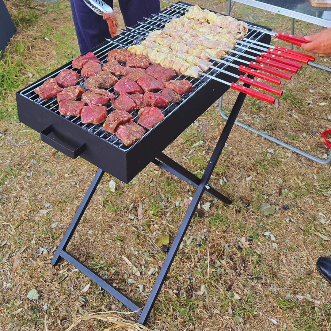 Ultimate Aussie-Tested Combo: Portable Charcoal Grill with Blower + Pro 60cm Skewers