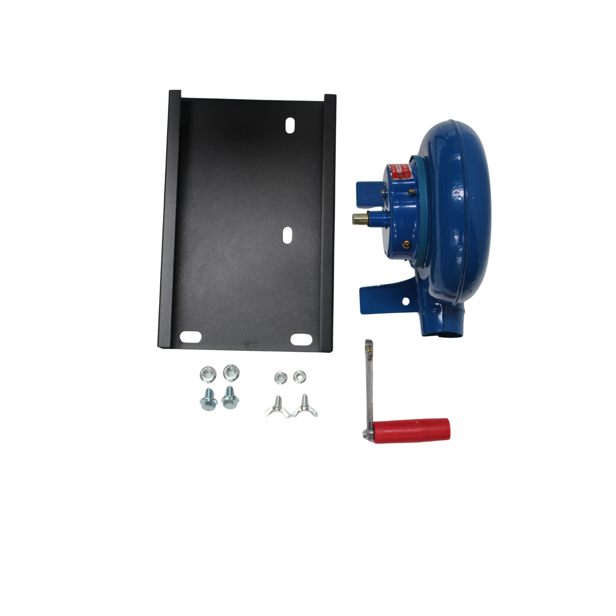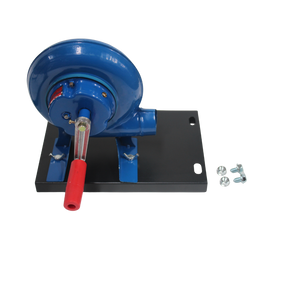 Each unit comes with a manual blower mounted on the side. A few turns of the handle push air directly into the charcoal bed, helping you: