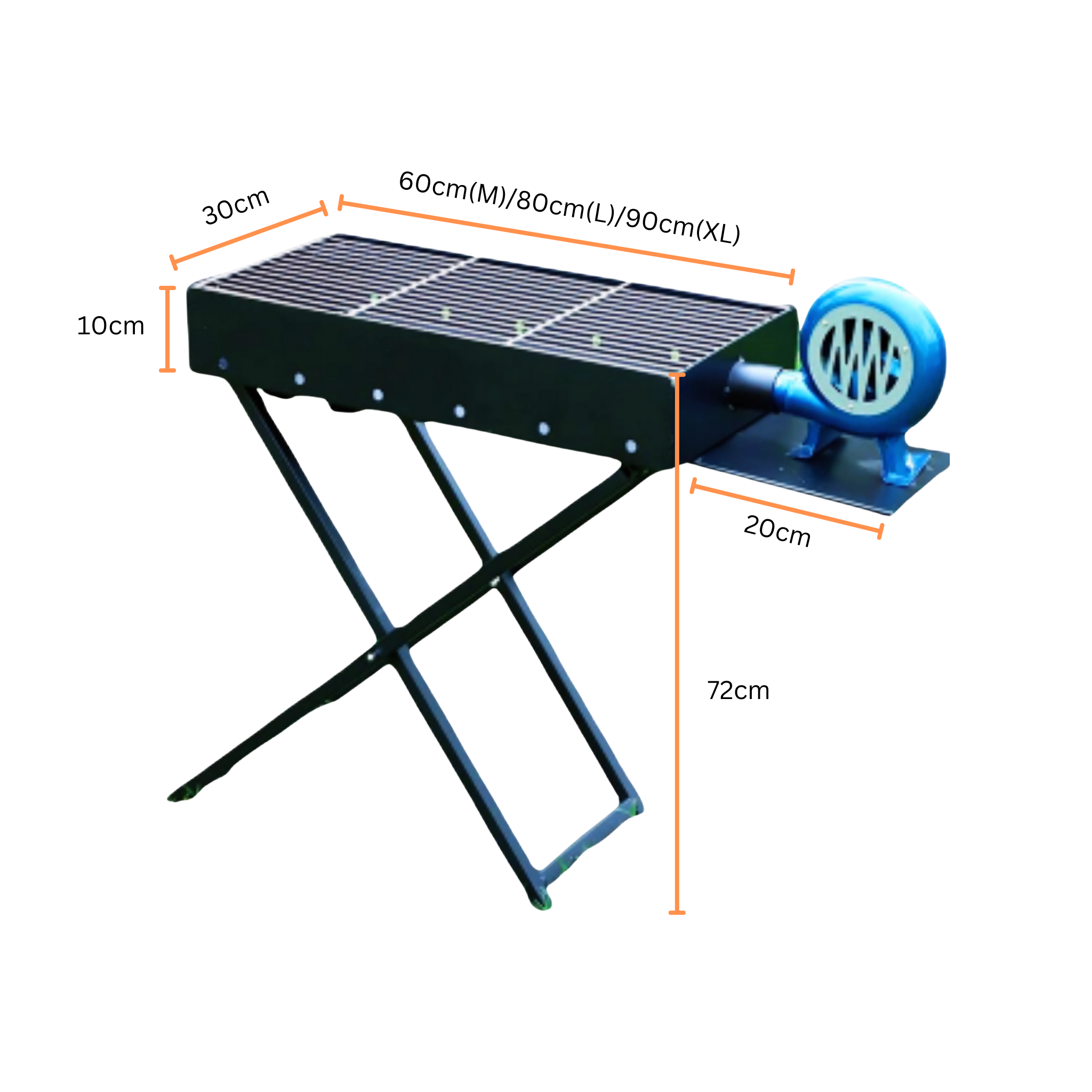Folding Portable Charcoal BBQ Grill + Blower, 60cm(M) /80cm(L) / 90cm(XL)