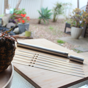 Elevate your grilling game with our premium stainless steel BBQ skewers. Designed for the true barbecue enthusiast, these skewers are the perfect tool for creating delicious, perfectly cooked kebabs, satays, and more. Say goodbye to flimsy wooden sticks and hello to durable, reusable skewers that make grilling a breeze. And with our innovative storage tube, you can keep your skewers clean, organized, and ready for your next cookout. It's time to impress your friends and family with culinary creations that are as beautiful as they are tasty!