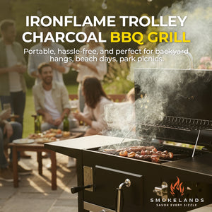 Experience the power and versatility of charcoal grilling with the Smokelands IronFlame BBQ. Crafted from robust carbon steel and finished with a sleek black high-heat paint, this grill is built to deliver exceptional performance and lasting durability. Featuring a spacious cooking area with enamel-coated grates, convenient side shelves, and thoughtful additions like a bottle opener and deluxe thermometer, the IronFlame is your ultimate tool for creating mouthwatering barbecue feasts. Take control of your grilling experience with the adjustable charcoal pan and impress your friends and family with your culinary prowess.